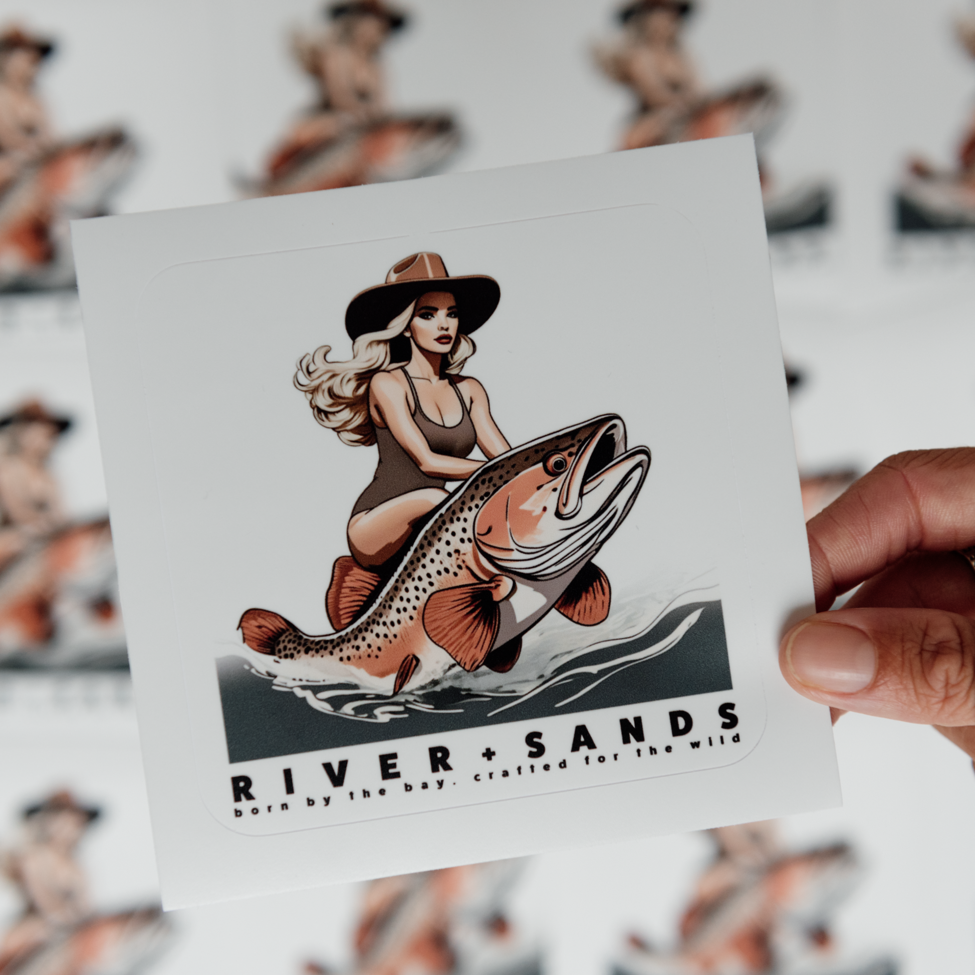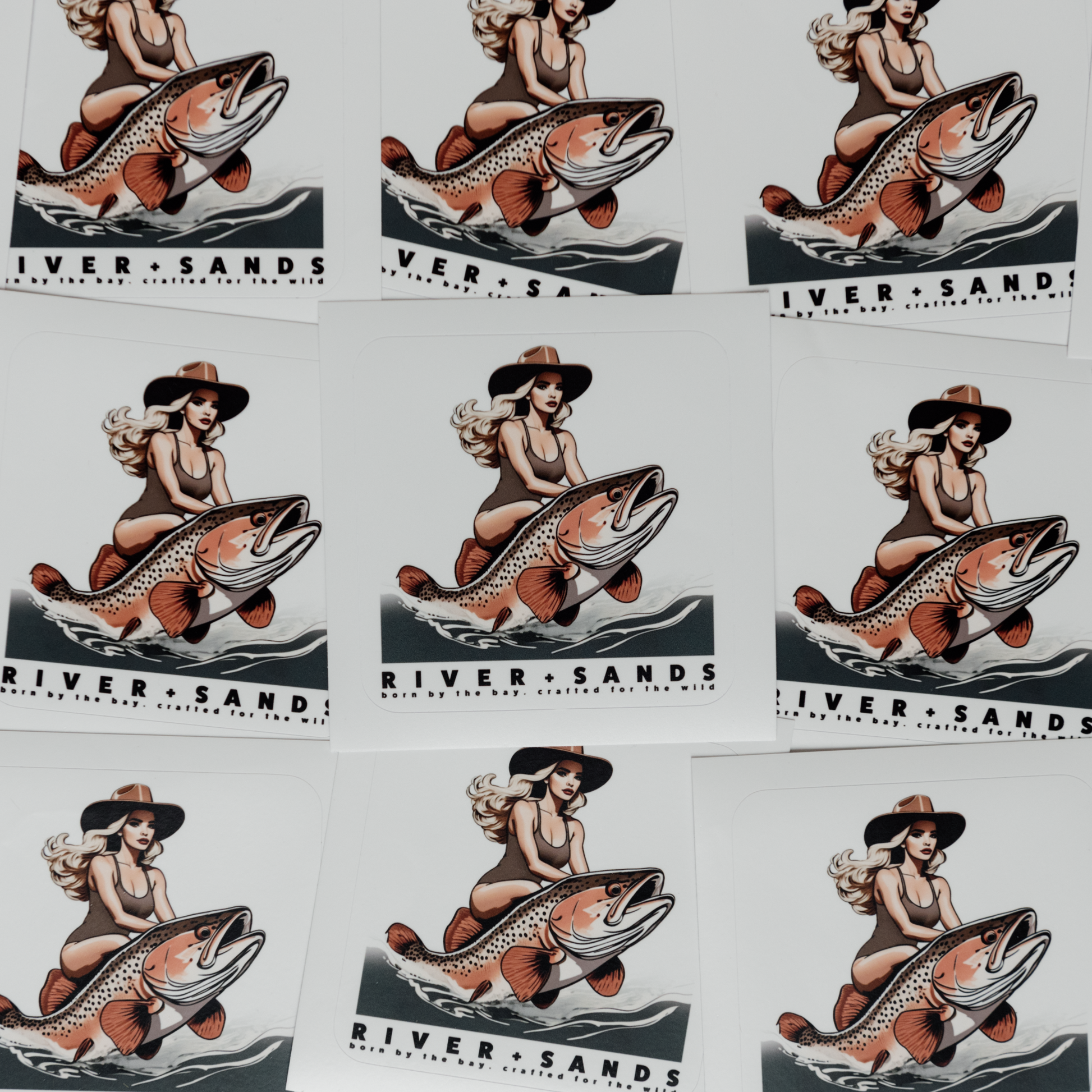 Ride the wave with our new Salty Wrangler sticker! Our design features a babe cowgirl riding a rainbow trout, capturing the fun and free spirit of the great outdoors. Perfect for your gear, vehicle, or any surface that needs a touch of adventure. Made with high-quality white vinyl, this sticker is built to last through all your salty escapades. Printed with waterproof and UV-resistant ink, so it'll stay looking fresh no matter where you take it.